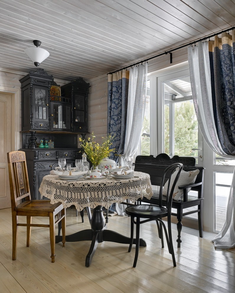 In the photo, the design of the rest room in country style