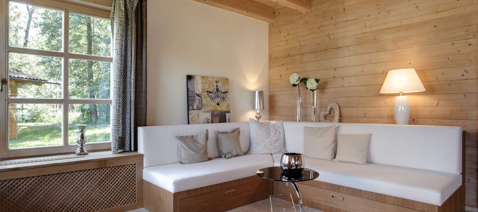 - Scandi. White painted lining will cope with the main task of the style - they will fill the room with light.