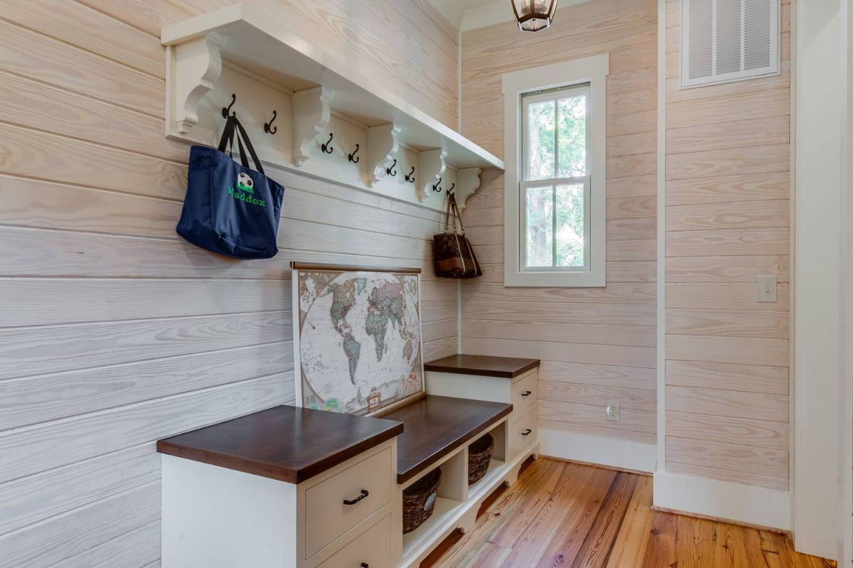 An added bonus in the hallway - you don't need any special hardware to hang an extra hook or shelf.