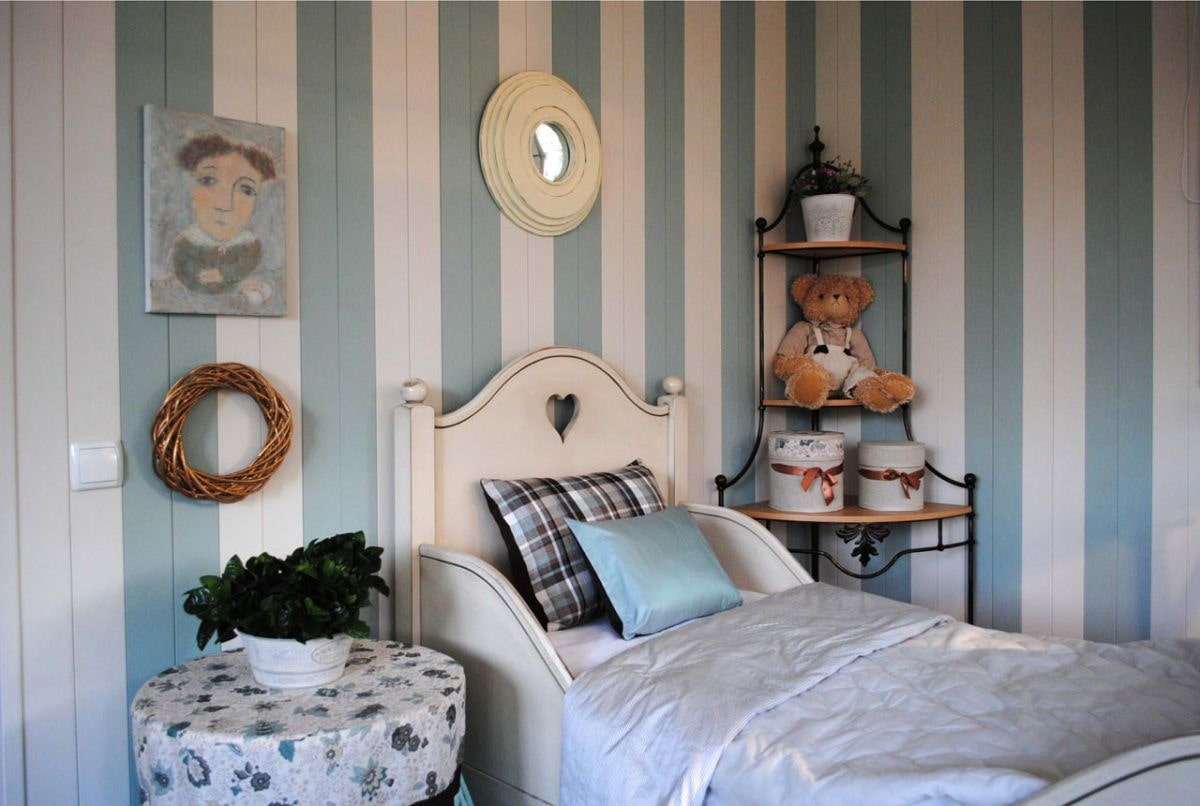 The most spectacular arrangement of the lining on the wall in the bedroom is behind the bed. Accentuate the wall or correct the geometry of the room with proper striping.
