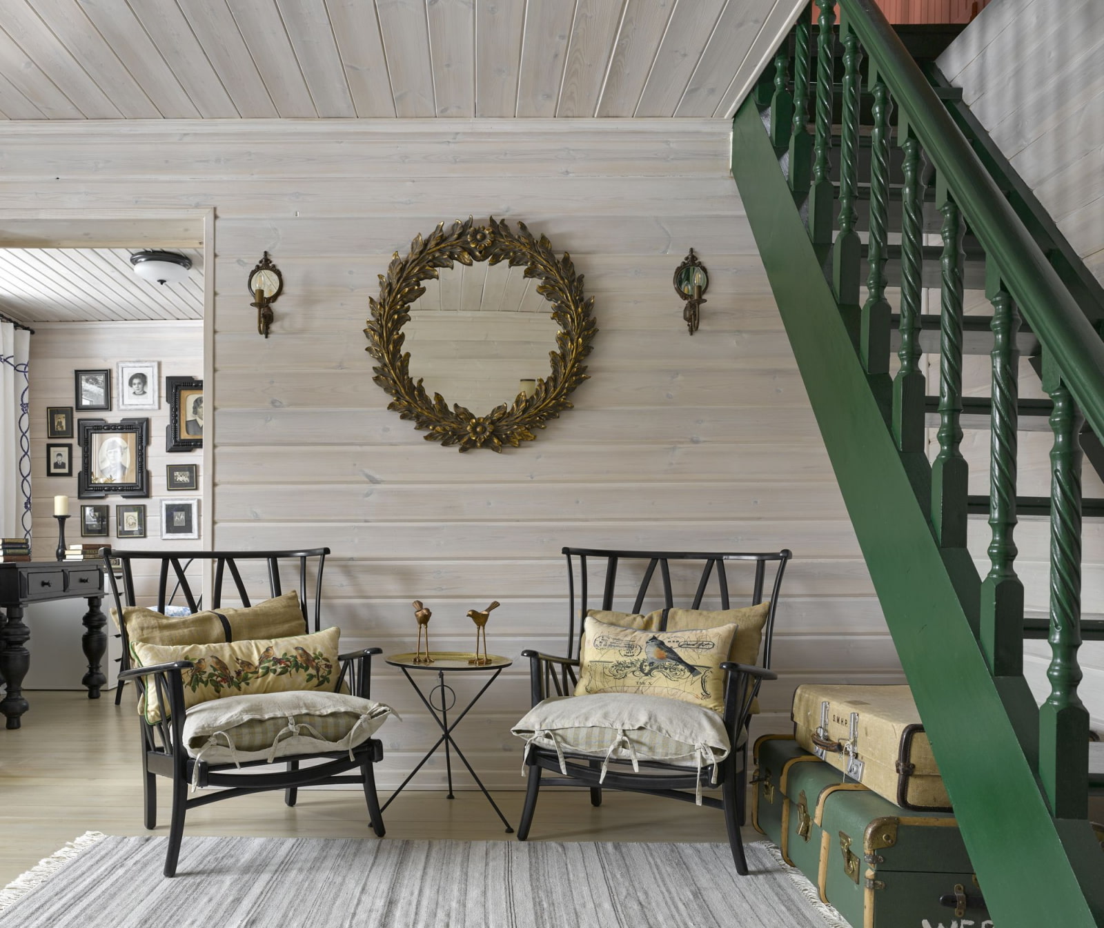 - Vintage. Walls made of brushed lining perfectly emphasize antique furniture and accessories.