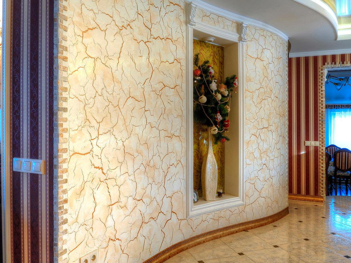 It has an antique effect and has fancy cracked patterns. This decorative technique is obtained due to a special craquelure varnish, which, when dried, pulls together the plaster layer and forms fractures.