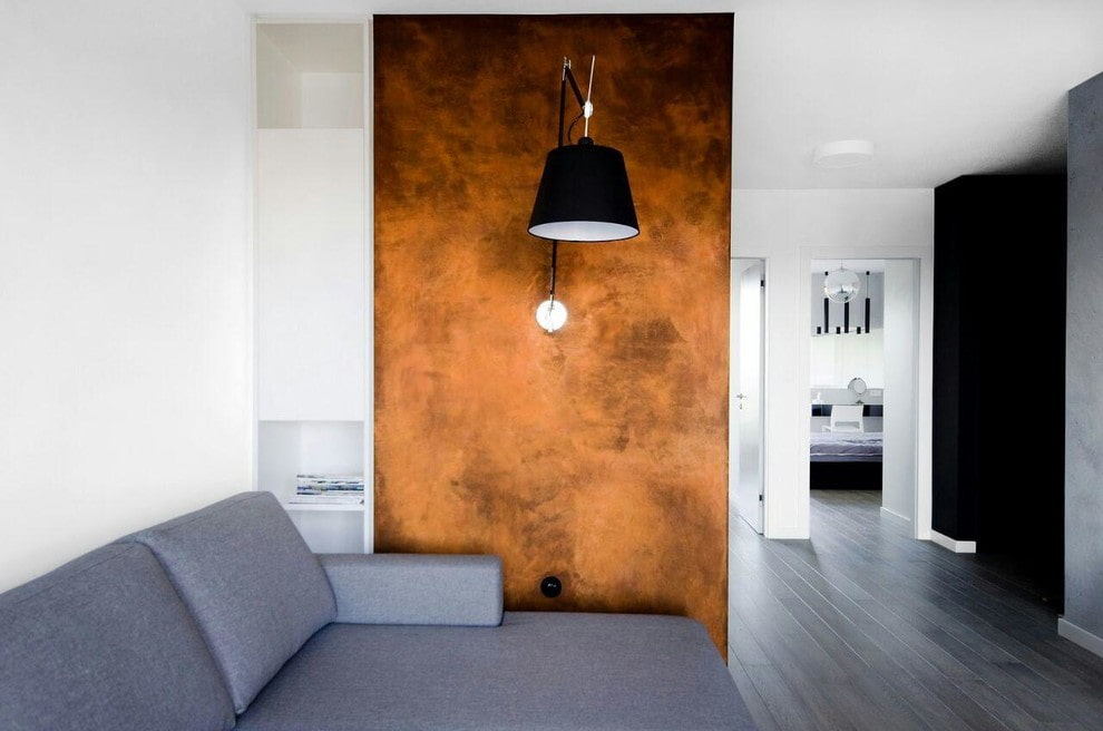 Venetian plaster is a seamless interior finish that looks like marble. It can have a glossy or semi-glossy texture, smooth or embossed surface, or be an analogue of various stone species, such as amber or malachite.