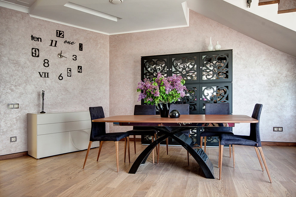 Creates rich, bold and contrasting accents in the interior. A room decorated in black will look modern and noble, and will acquire a more expressive and clear look.