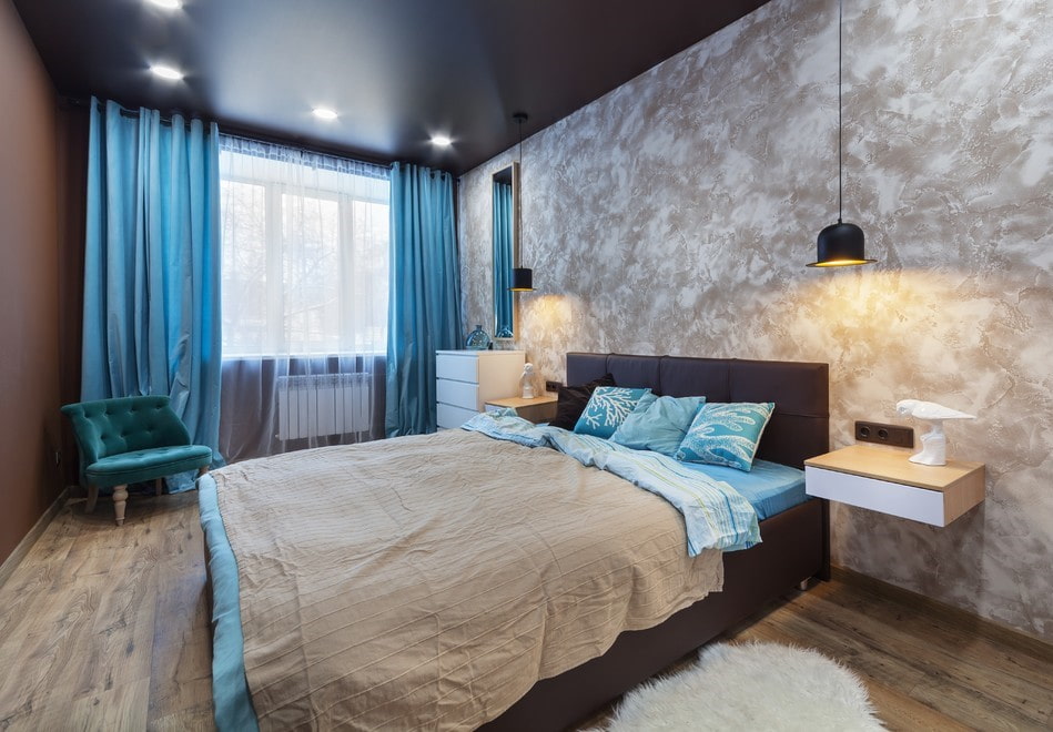 Venetian decorative plaster is environmentally friendly and non-toxic and therefore is almost a universal option for the bedroom. Thanks to a wide color palette, this design will give the room airiness, individuality and chic.