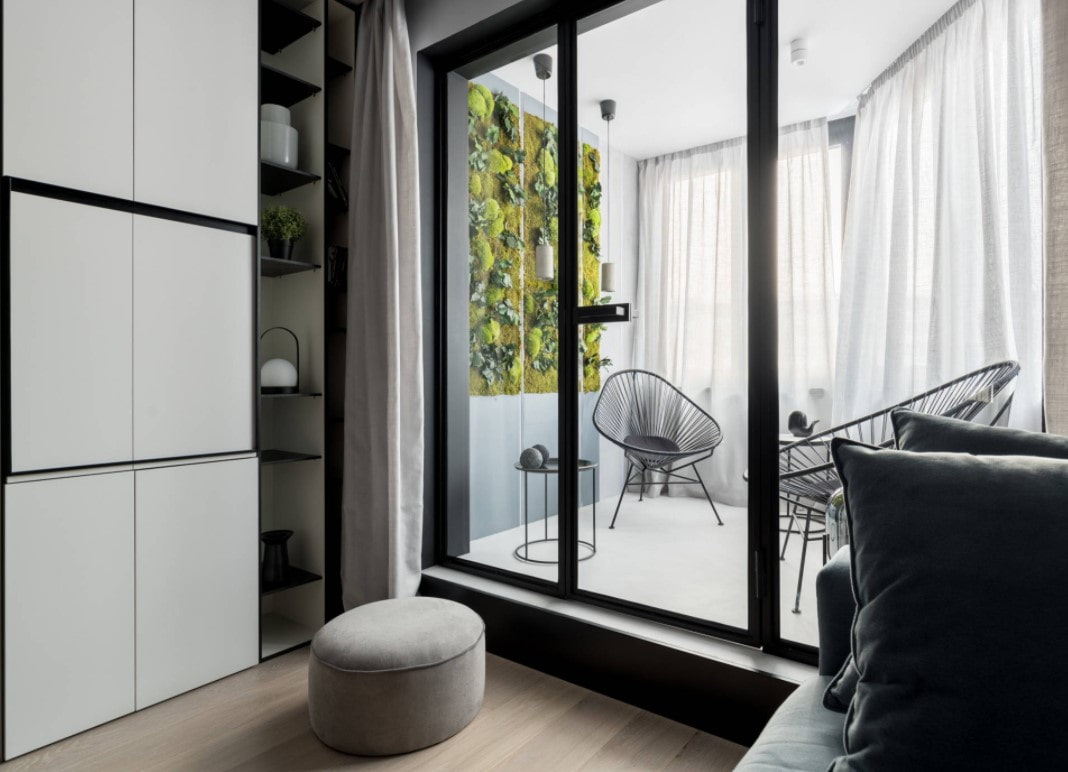 Phytomodules can be either very simple, requiring regular maintenance, or autonomous: they are connected to an outlet and water supply, watering and lighting are independently regulated.