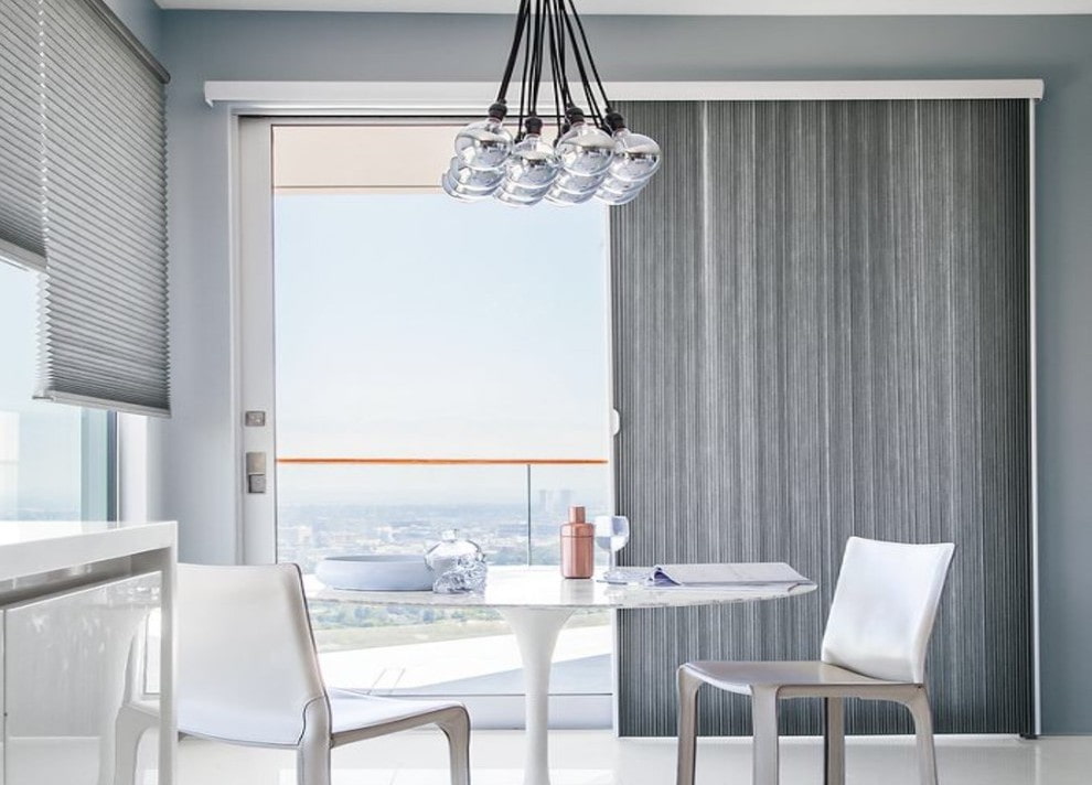 For such large windows, long vertical slats are an obvious and relevant choice. They will make the space harmonious, stylish and modern.
