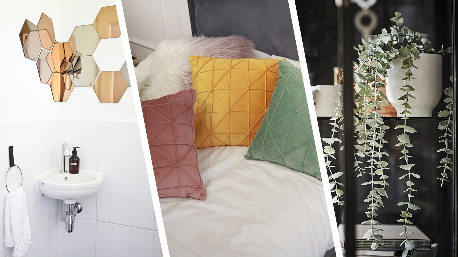 Trendy hexagons are widely used in many design projects. These 3d stickers not only act as a great decor, but also have a useful function, reflecting space and adding light.