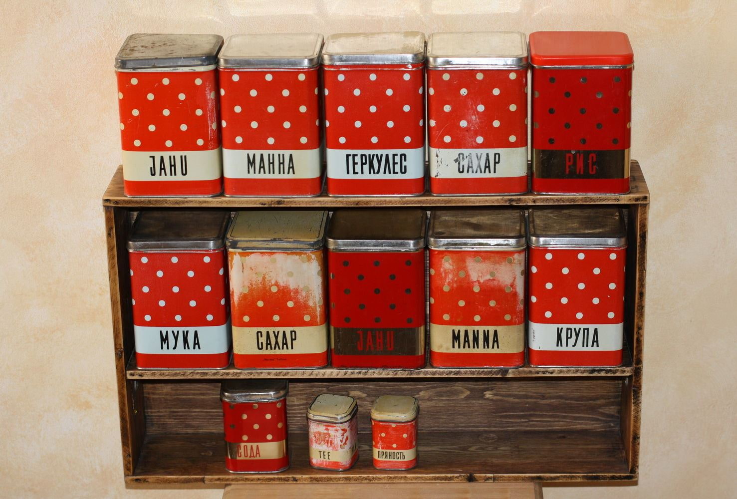 Tin cans for storing bulk products in Soviet times were in almost every kitchen. They did not differ in variety, but they were durable and practical, so many of them have survived to this day.Today it is a genuine vintage, which is why recognizable metal containers are still in demand in interiors where objects are valued for their history.