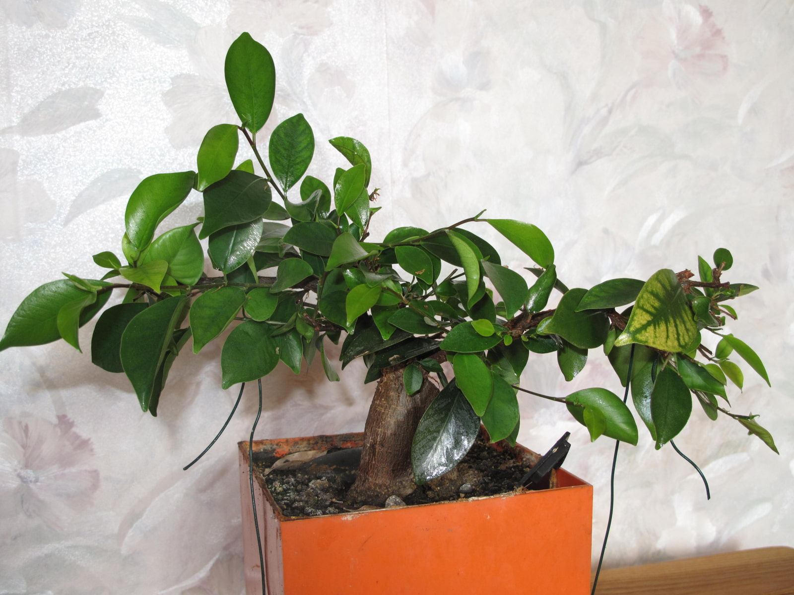 Another "natural bonsai" that resembles the previous variety. But unlike microcarp with almost round leaves, f. retusa leaves are thinner, pointed (shaped like Benjamin's foliage). But the trunk is the same non-standard - thick, curved, beautiful in its own way.
