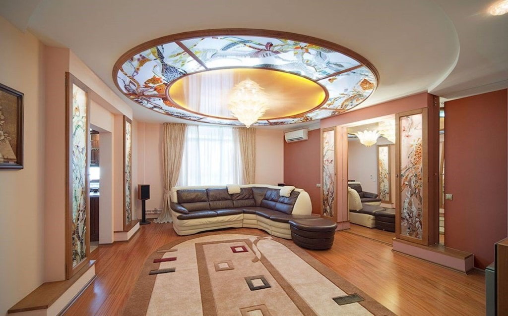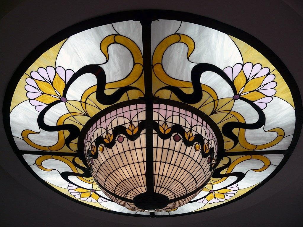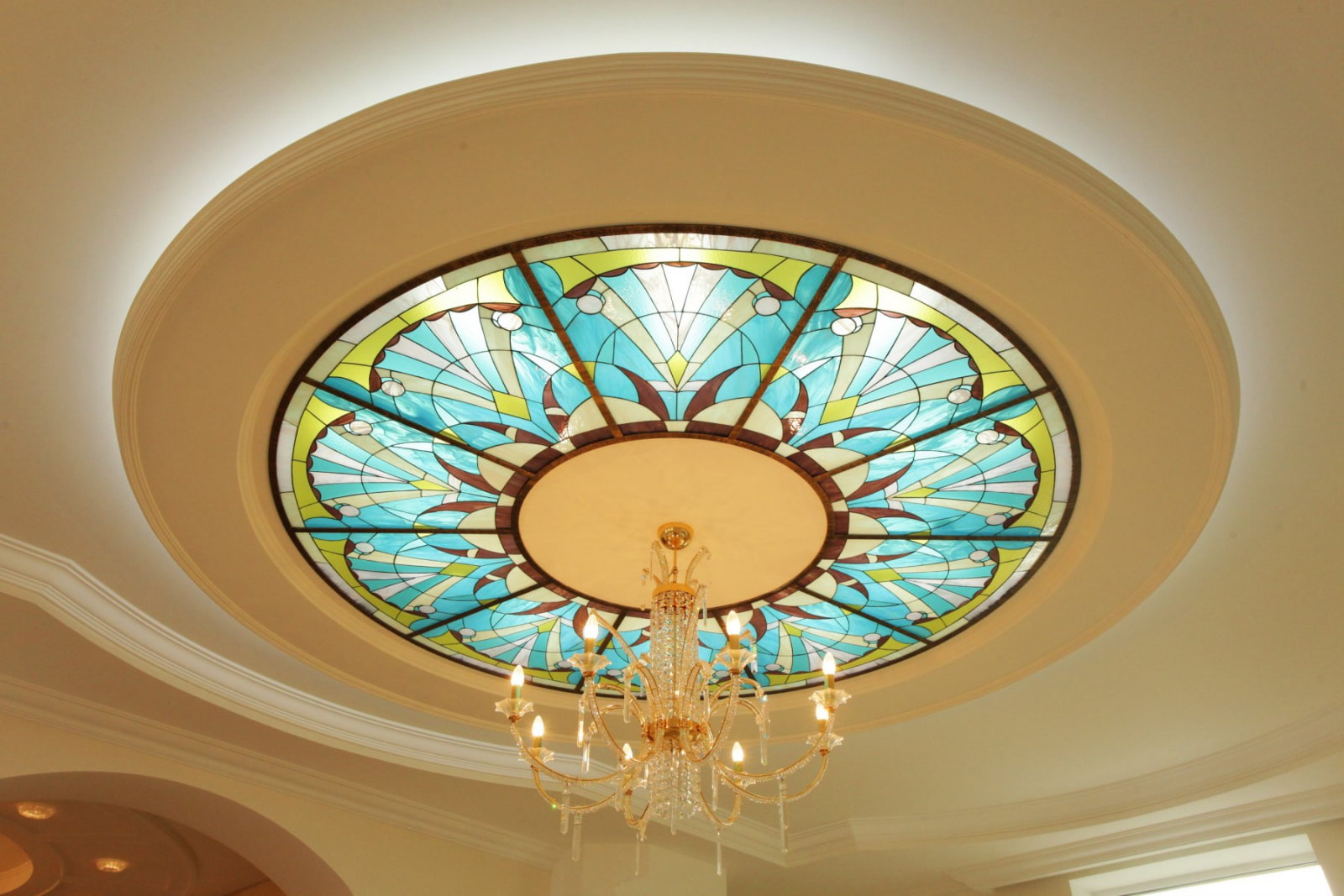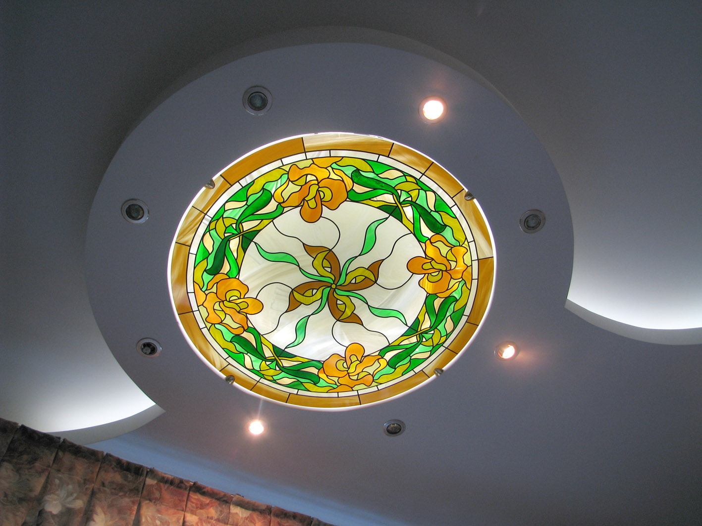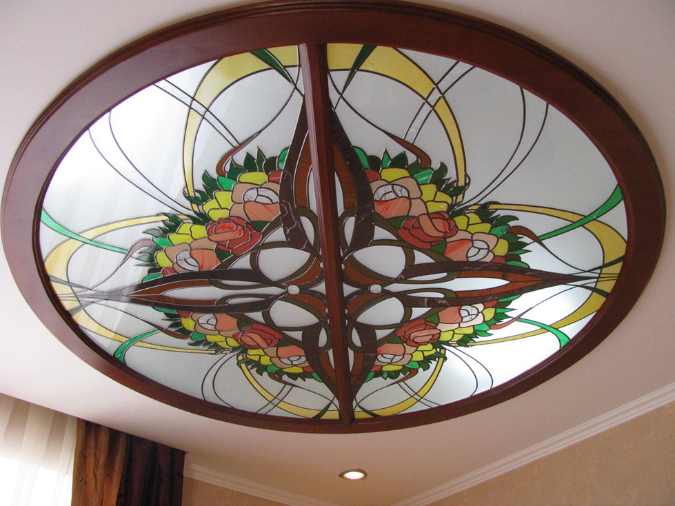 Round type of ceiling, which can be of absolutely any size. The plafond stained glass window is a very striking decorative element.