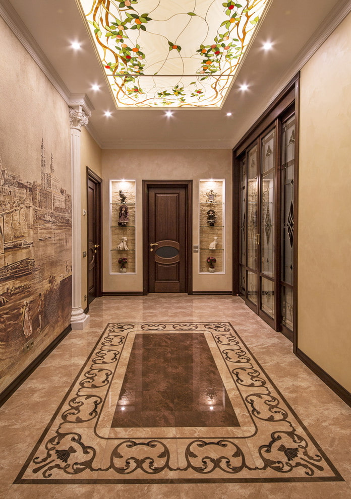 For a corridor or hallway, both discreet options and more expensive design techniques are suitable. They will give this room a status and elite status.