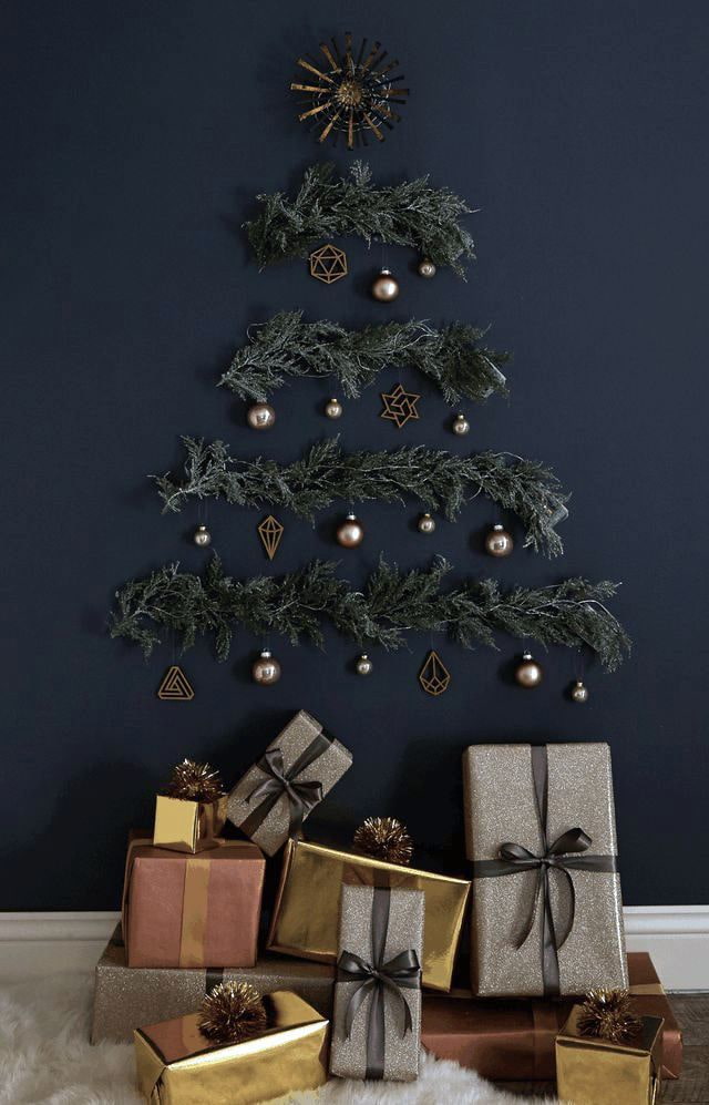 Another interesting solution: print a photo of the tree on several sheets and add garlands.