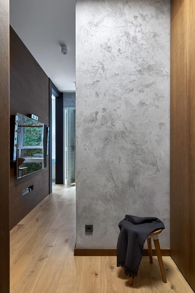 Variety of colors and types of finished surfaces (venetian, bark beetle, imitation of granite, concrete, "under the roller", etc.) allows you to create a unique design. The main difference decorative plaster from painting or wallpaper - creating a three-dimensional texture, thanks to which minor defects and irregularities are easily hidden.