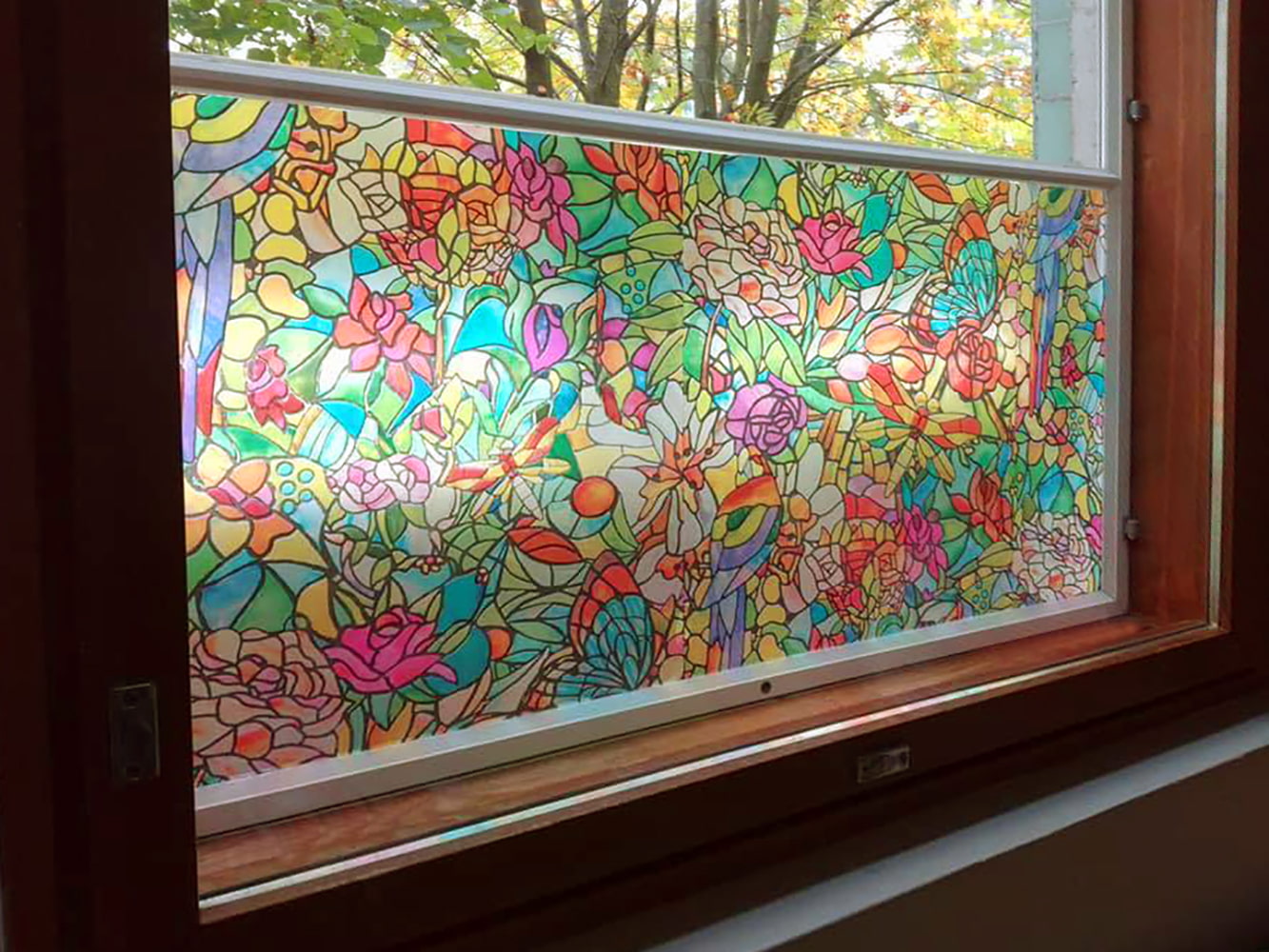 In order not to feel isolated from the street, stick the film to the middle of the window. In addition to ordinary products without a pattern, you can use a film with imitation of stained glass painting.