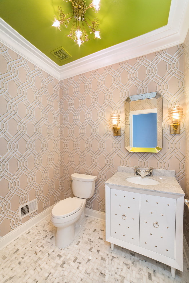 They differ in a relatively low price and a variety of different textures. Wallpaper allows you to hide some imperfections and unevenness of the ceiling surface.