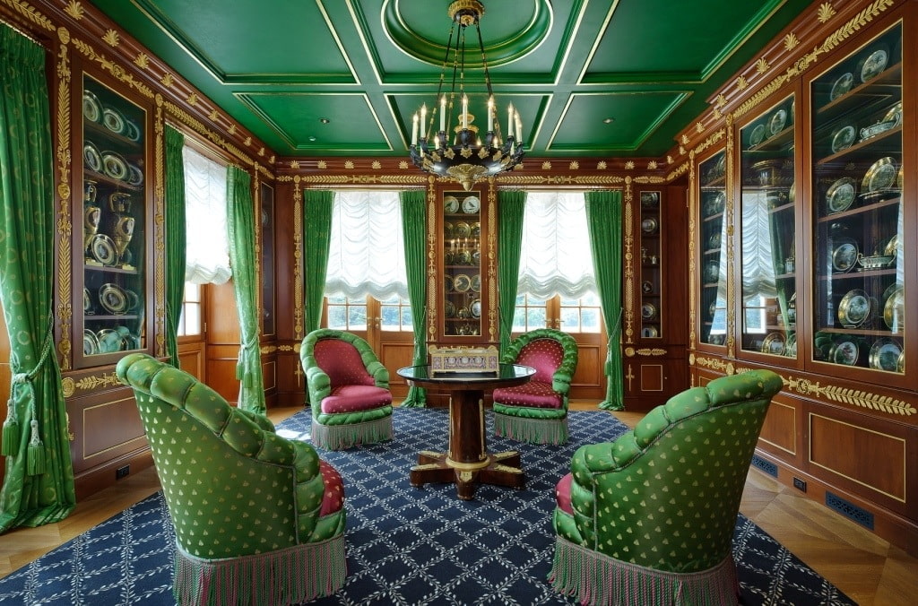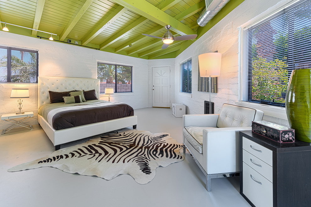 The green ceiling makes the interior quite cozy and comfortable. It creates a relaxing and serene atmosphere and adds positive energy to the room.