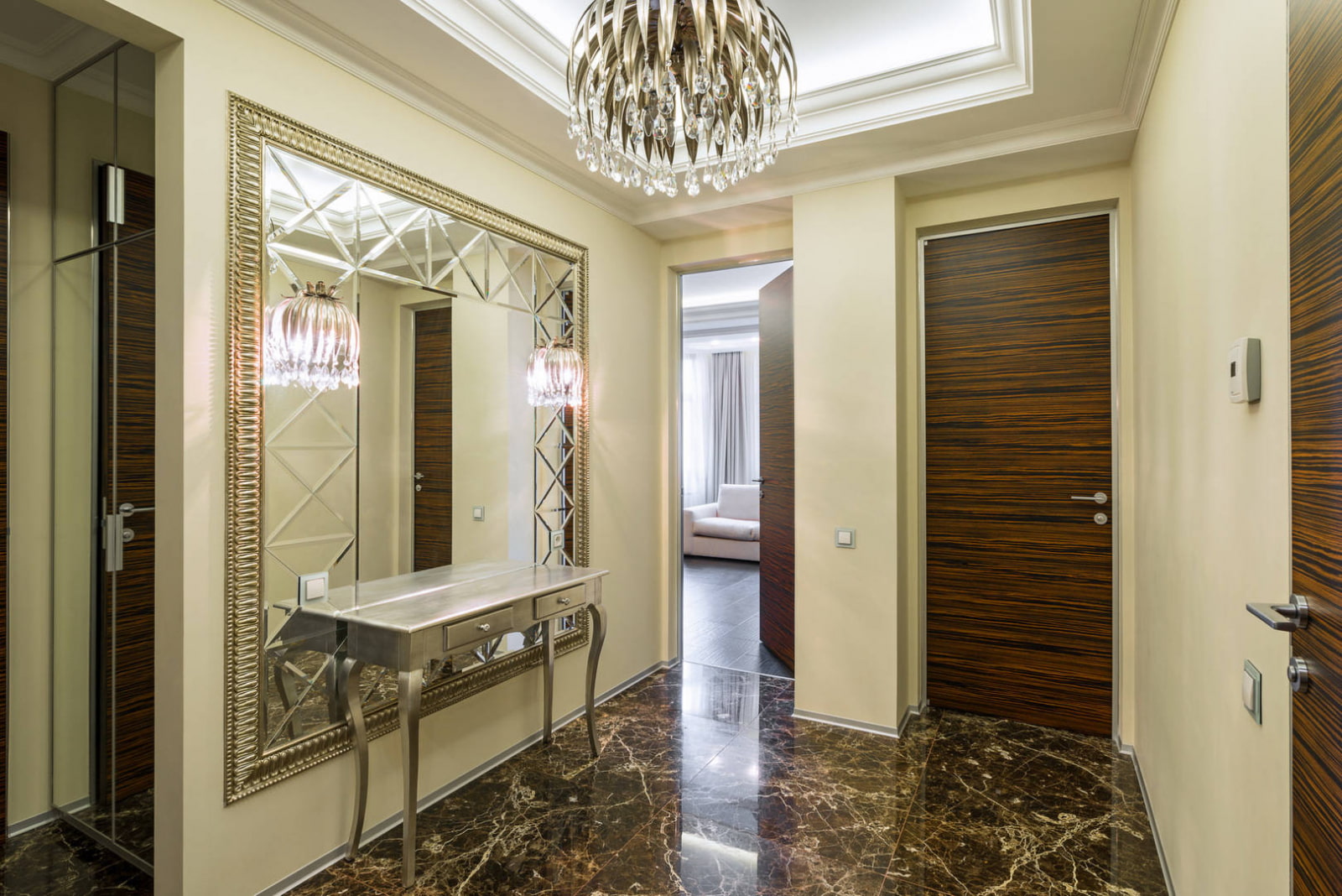 It has a maximum reflection area, gives the room depth, volume, exclusivity and reveals interior objects from a more advantageous side.