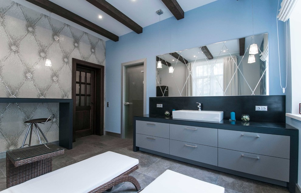 Products with a facet, located in the entire wall or occupying only a small area, will add a certain multifaceted perspective and multi-faceted appearance to the bathroom. This design, in combination with tiles or mosaics, allows you to fill the space with an additional reflective effect, correctly place accents in it and form a magical aura.