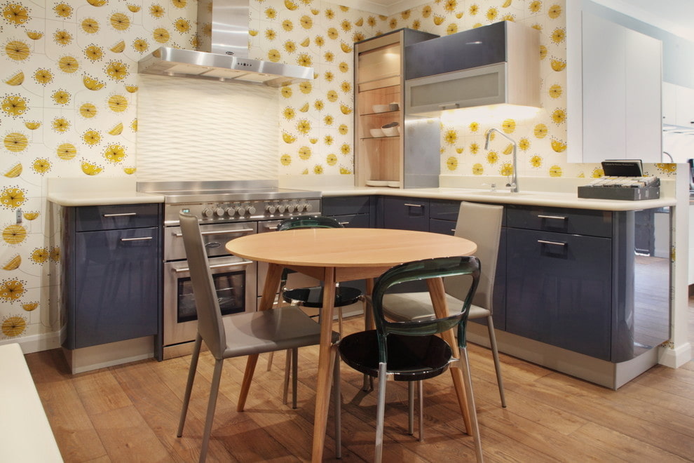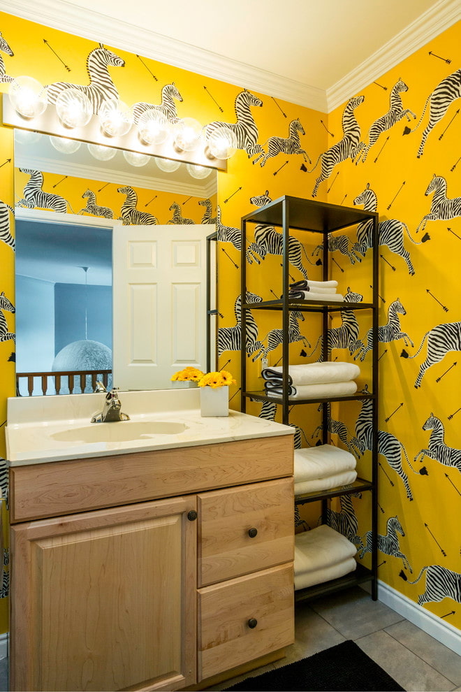 Yellow wallpaper with a pattern will be an excellent option for decorating a children's room. A positive background and thematic drawings will give children a good mood and contribute to their development. For the kitchen, an interesting option would be to decorate the walls with wallpaper depicting fruits.