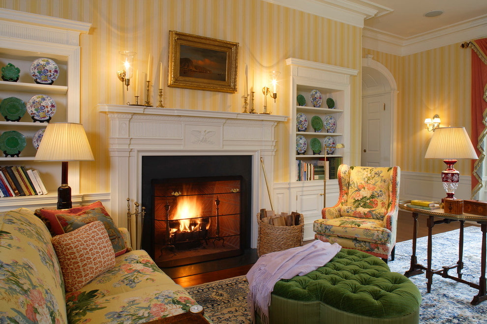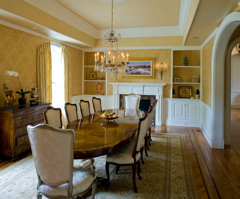 The classic style is characterized by restraint and elegance. For a classic interior, you should choose a calm shade of yellow, wallpaper can be decorated with monograms and beautiful ornate patterns. The interior will be complemented by light furniture of graceful shape, thick curtains and flowers in a ceramic vase.