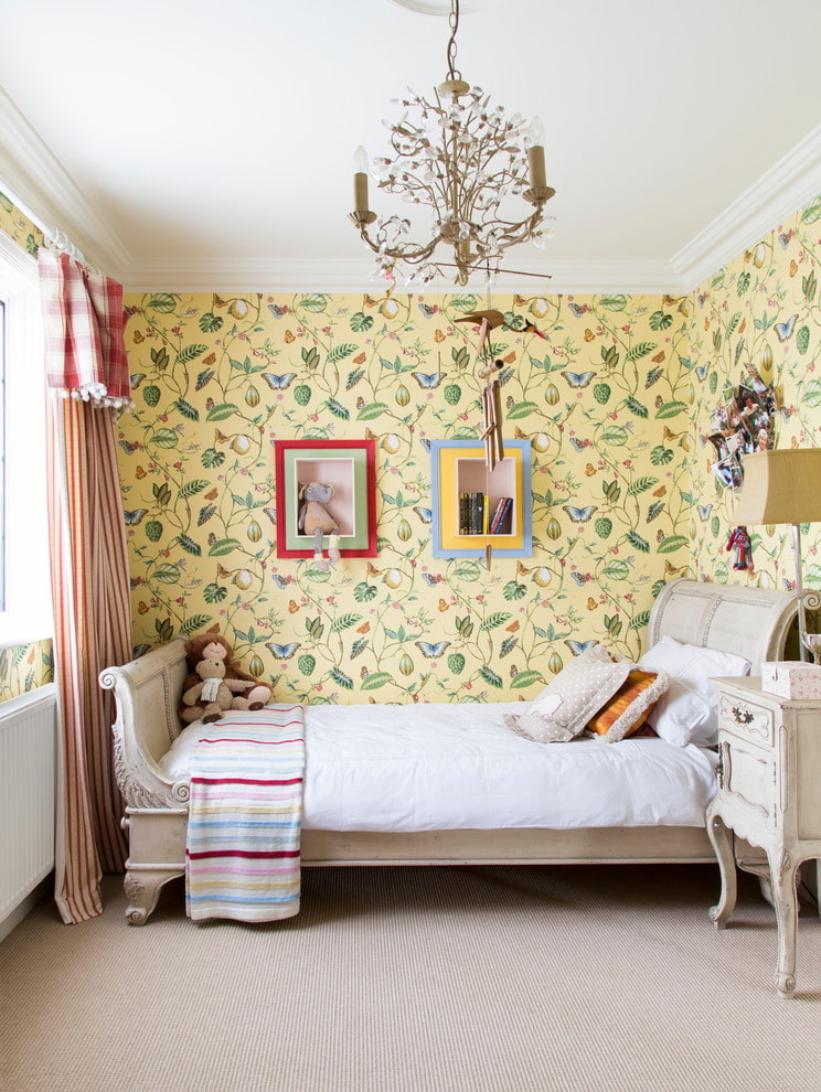 Yellow color brings positive and good mood, any shades will look harmonious in the children's room. A good option would be to divide the children's room into a sleeping and play area. In the sleeping area, it is better to choose a light and calm wallpaper tone; bright colors and photo wallpapers are suitable for the playroom.