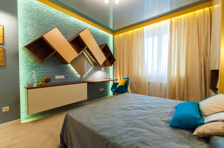 A pattern or ornament will support the design idea. The pattern can be repeated in other interior details, for example, a bedspread, pillows or a chandelier lampshade.