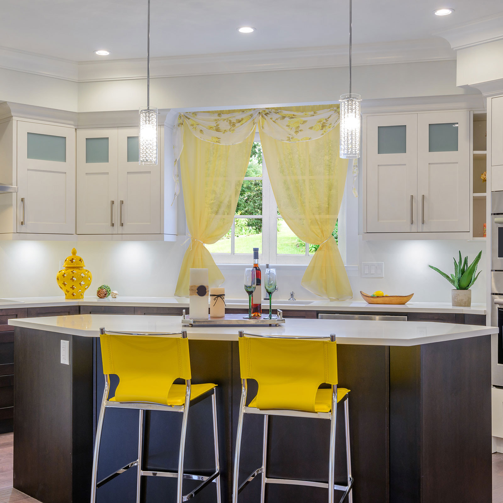 - For yellow curtains, white tulle is ideal.