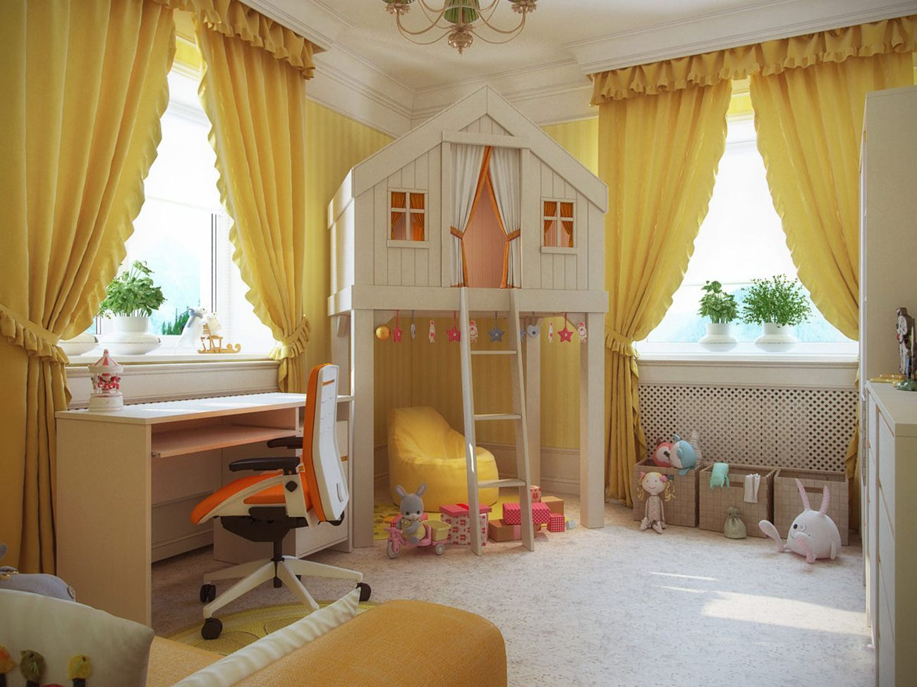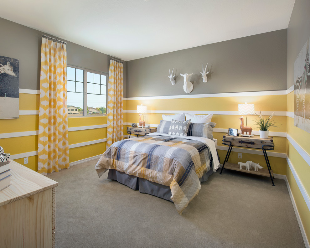 In the children's room, you can pay attention to the yellow color and pattern. Photocurtains will support the interior in a specific theme and make the room more interesting.