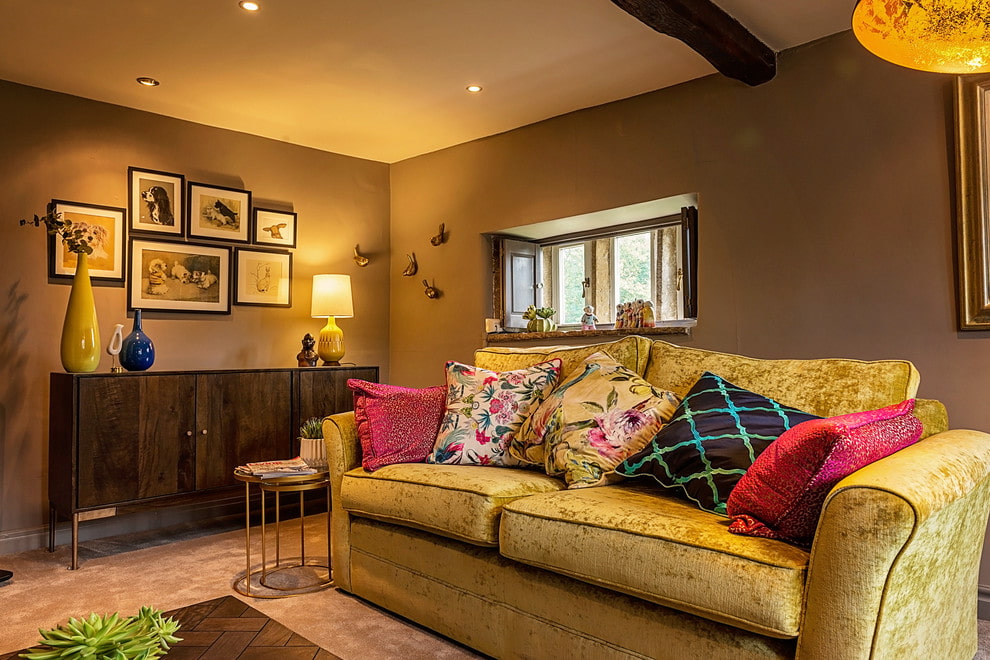 Cheerful, vigorous, saturated and slightly evocative bright yellow colors will create the most positive atmosphere.