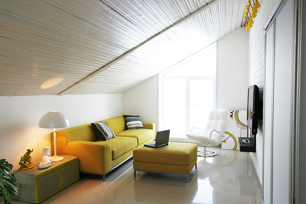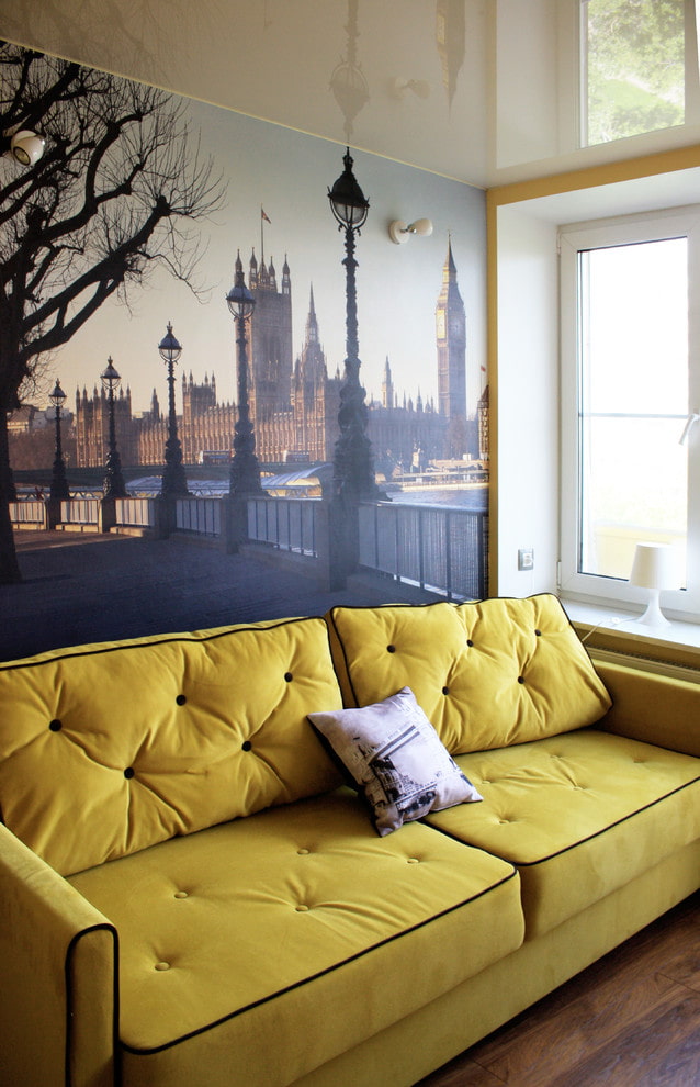 With the help of a yellow sofa, it turns out to transform the interior of the bedroom, give it a completely new sound and bring some zest.