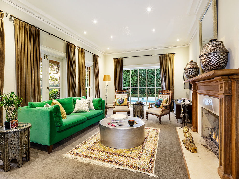 Gold color goes well with pastel tones of green, peach, blue, beige and white wallpaper.