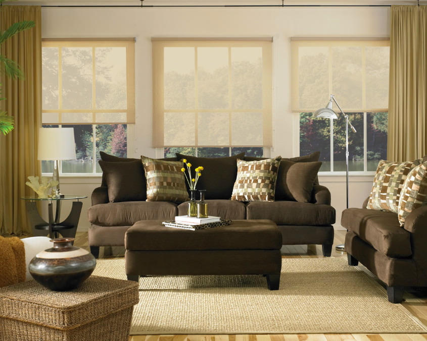 This combination of curtains looks the most successful. Such a duet cannot be spoiled by the proportions of colors. All shades of coffee and chocolate, together with gold, look good in any interior.