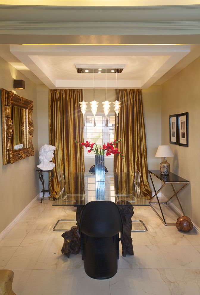 Gold is a warm color palette, but it also comes in a variety of shades, from cool blue to vibrant red. Gold curtains are suitable for rooms with a lack of natural light, where they will play the role of a warm hearth or sun. A wide selection of shades makes it possible to create dissimilar images due to the texture, type of curtains and the way they are suspended.