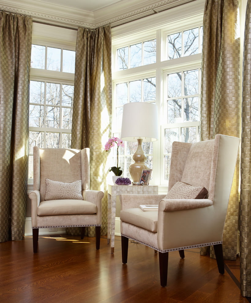 - Floor-length curtains look best, medium length is undesirable, especially without strings.