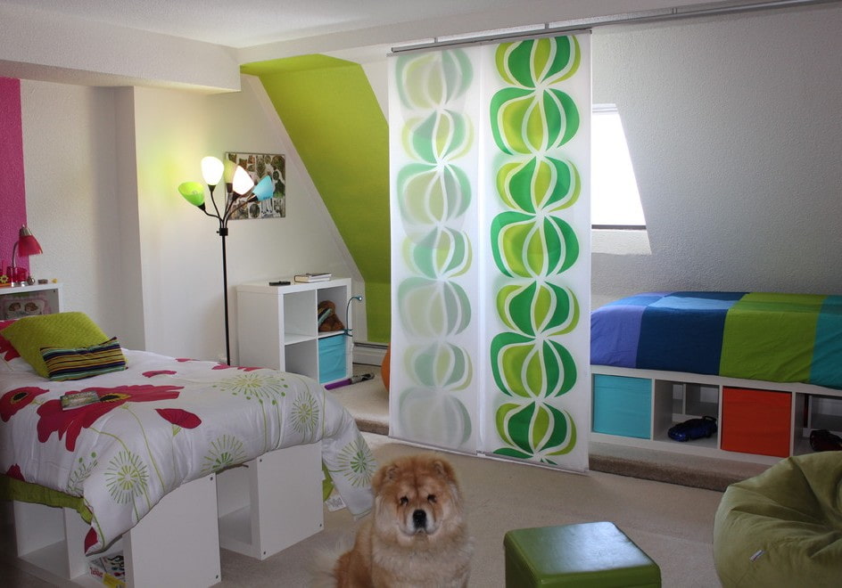 - If the room is made in pastel colors, you can choose designs in brighter shades for zoning.