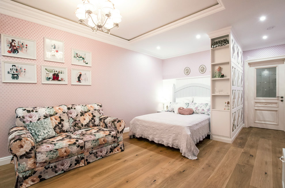 This French style is distinguished by light, most often white, pink, peach, cream, beige or olive colors, elegant wrought iron or wooden furniture, decorated with openwork carvings. In a romantic design, they use various floral prints, choose curtains, canopies made of weightless fabrics that let in a lot of light into the room.