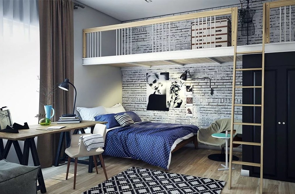 Taking into account the functionality of the room, you should be especially careful about its furnishings. The obligatory attributes of this bedroom are a bed, a desk with an armchair or chair, and a wardrobe.
