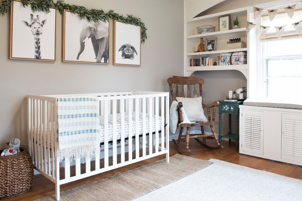 Different textiles will add even more charm to the space. The cradle is complemented with a bright baby blanket, and a small development rug is laid on the floor. The walls in the newborn's room are decorated with large letters that form the baby's name or memorable photographs.