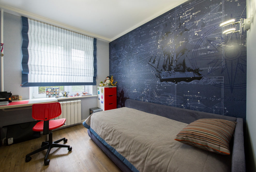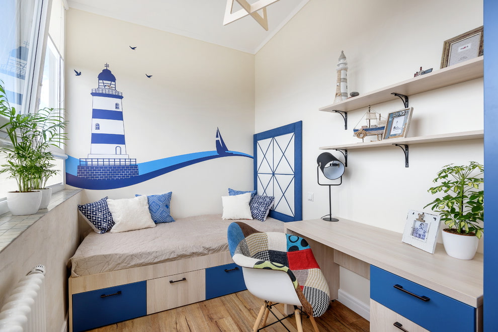 When renovating a room, it is worth considering the interests and hobbies of the child, as well as his favorite colors. For walls and furniture, light gray, blue, white and green shades are most often used, as well as bright elements in the form of textiles (pillows, rugs, curtains). Designers recommend sticking to one style so that the interior looks holistic. Modern, Scandinavian and nautical styles, as well as a loft are appropriate.