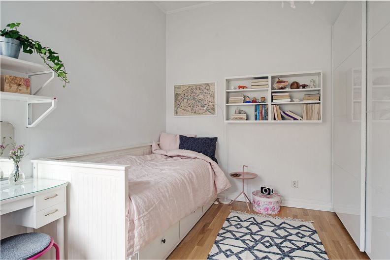 A universal option is to paint the walls in neutral white and choose colored accessories: curtains, pillows, bedspreads. When decorating an interior for a schoolgirl, Scandinavian, classic and modern styles, as well as Provence and fusion are suitable.