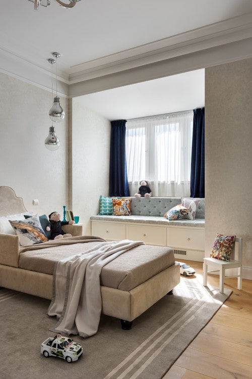 - Safety. The younger the child, the more attention should be paid to the absence of sharp corners, hidden wiring and other elements. Children grow quickly and their nursery areas should also grow with them.