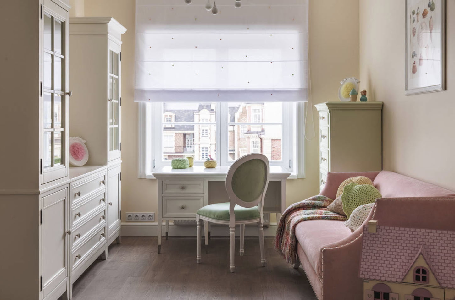In the photo there is a room for a girl in a classic style