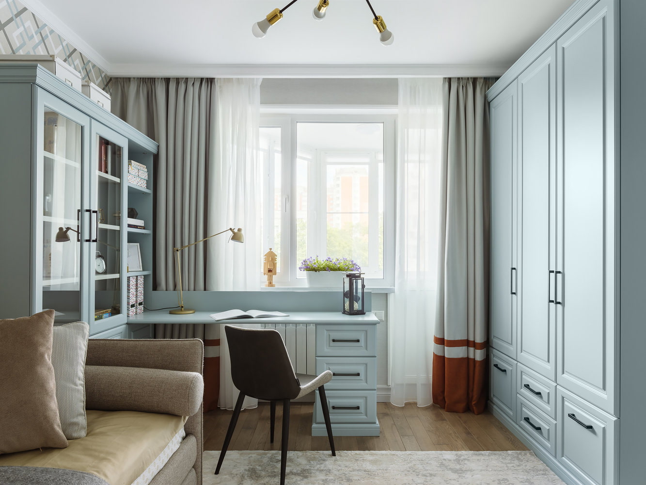 A room for a 7–17 year old schoolchild requires proper organization of the study space: a desk and chair should be appropriate for the child's height, and the work surface should be provided with good lighting.