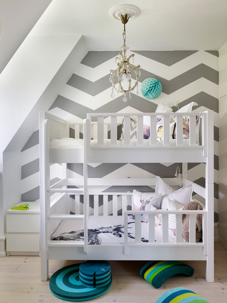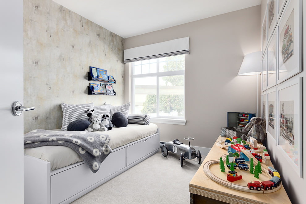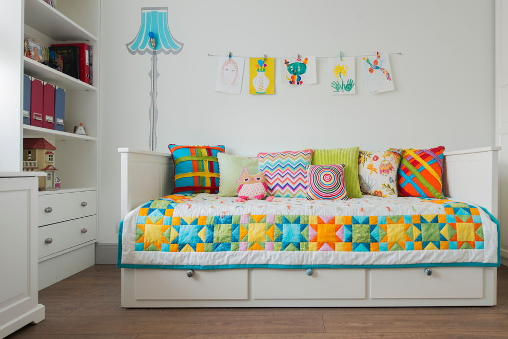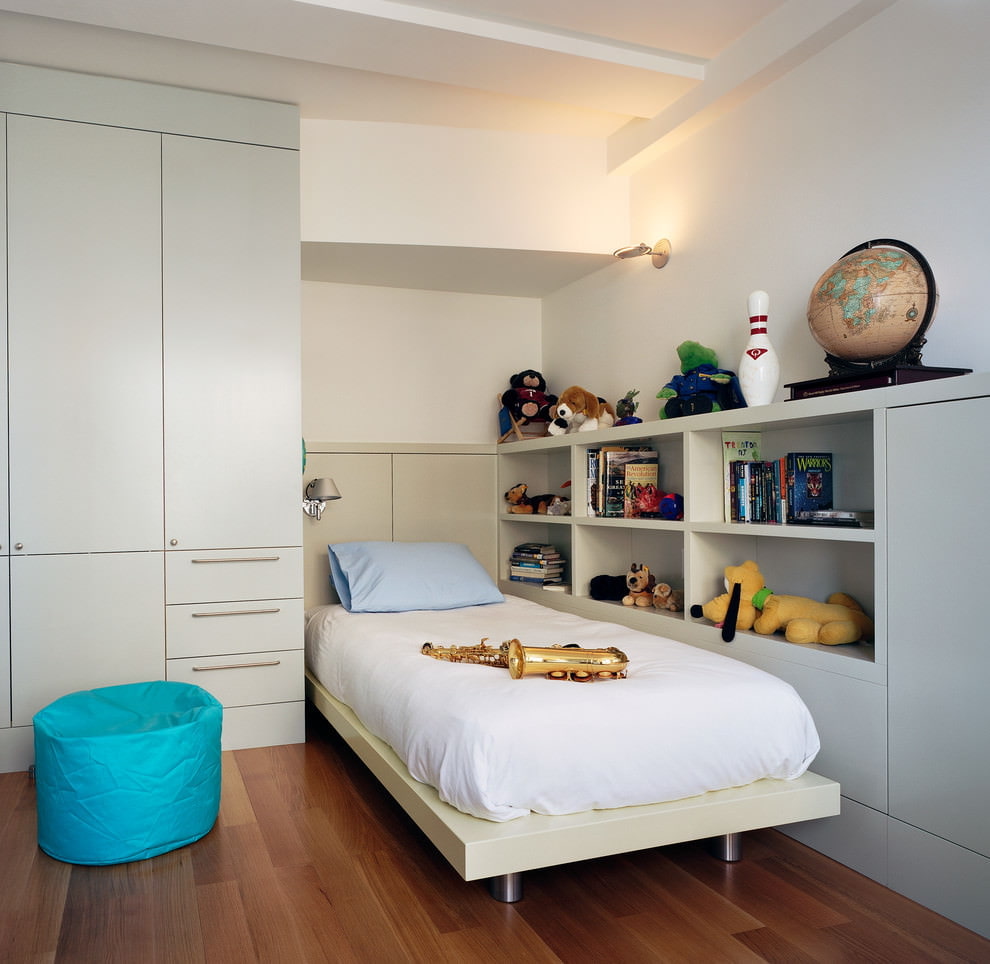 It is better to choose a bed for growth, of the usual adult size, and organize a second floor for it for games or storage. The bed can also be a chest of drawers, which has pull-out shelves at the bottom. A pull-out bed, an armchair-bed, a folding sofa will also save space in a small nursery.