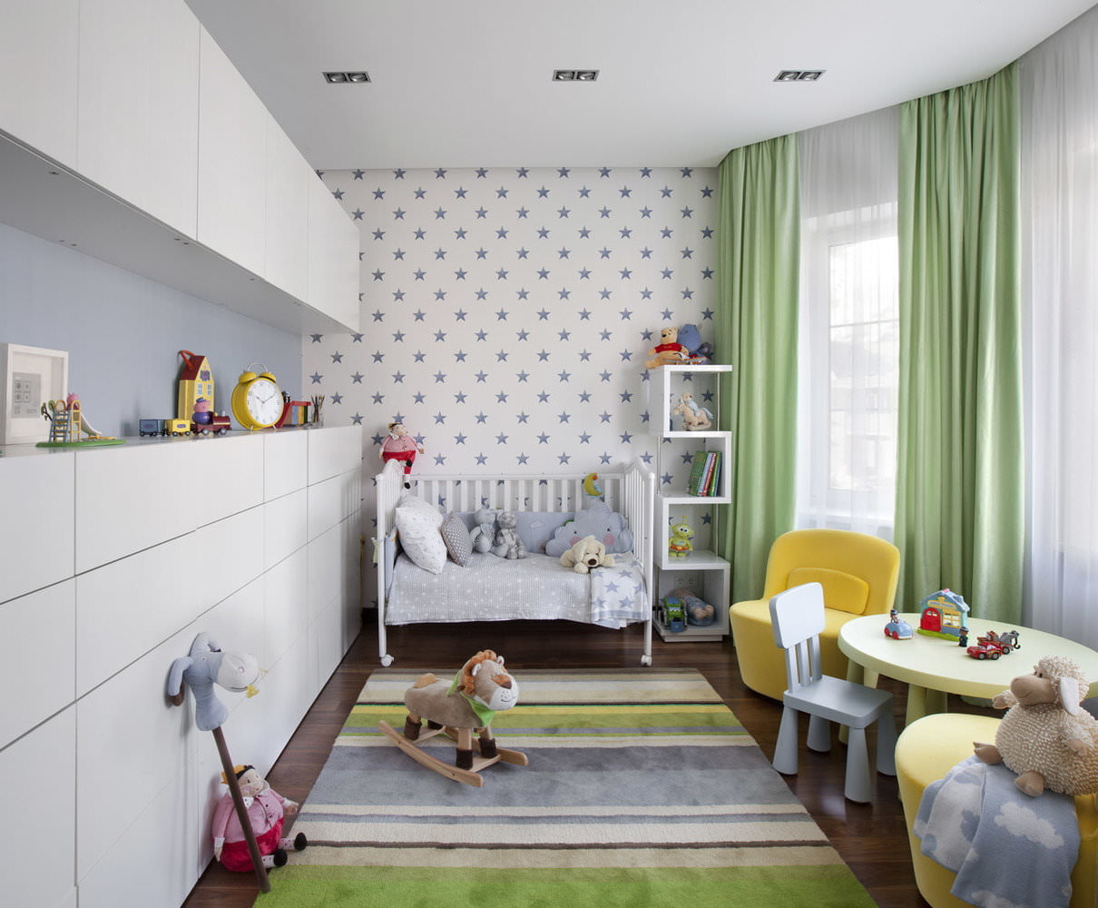 In order for the nursery to look relevant as long as possible, it is worth decorating it with toys and accessories that are easy to replace. The room can be made in different styles using the play of colors, textiles and decor.