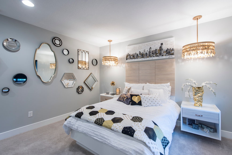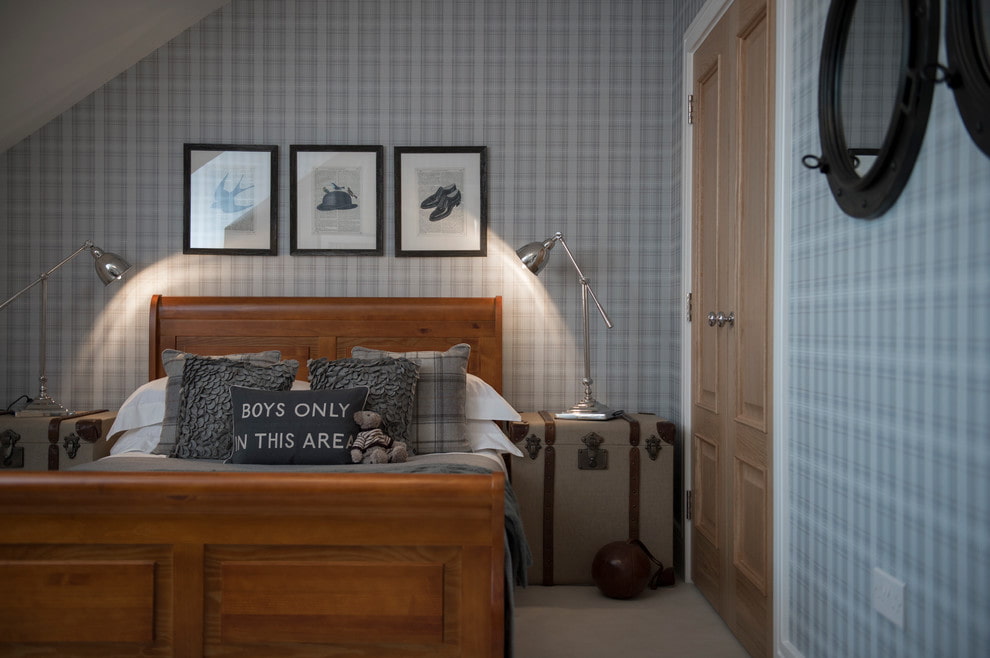Gray provides a beneficial backdrop for decorative elements.Even the simplest accessories become more catchy and original. Walls and furniture facades can be decorated with vinyl stickers, decorate the room with posters, pictures, garlands, ribbons from flags and more.