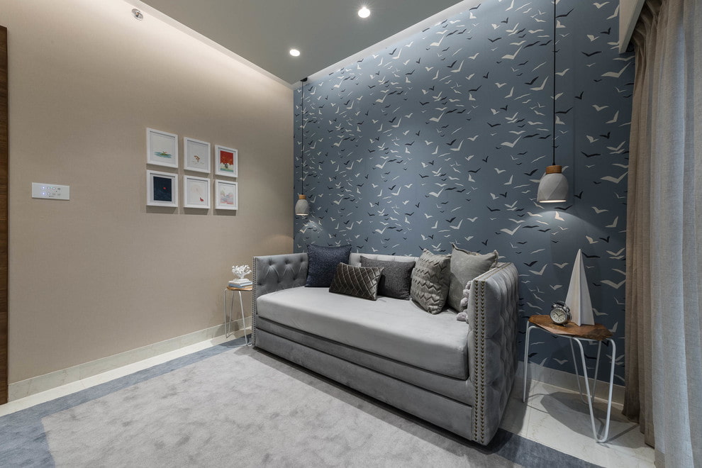 Blue and gray are a great duo that allows you to achieve a calm and neutral interior without bright details. For an even more harmonious design, the blue-gray union can be diluted with warm beige.