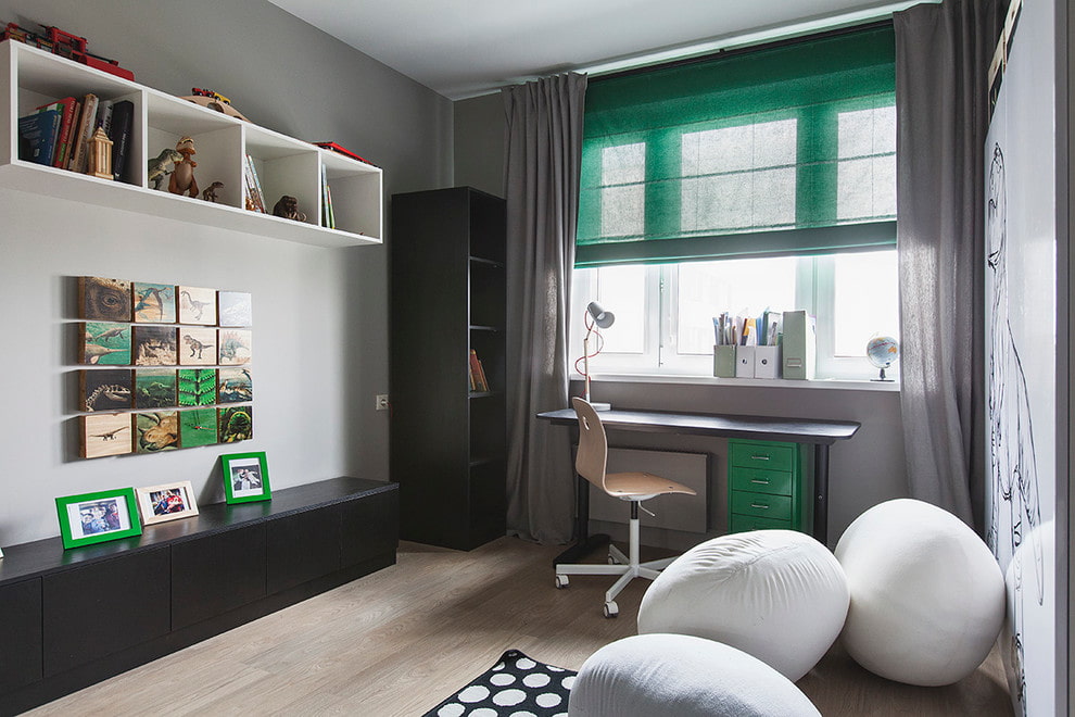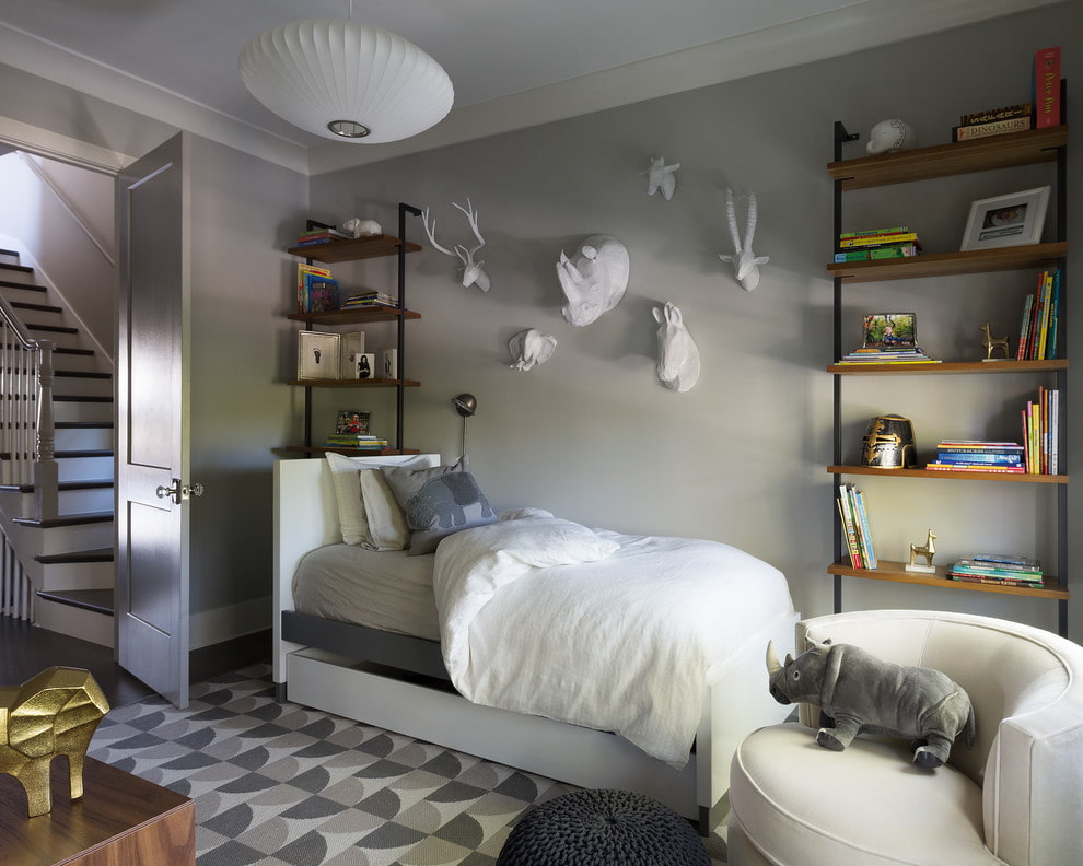 - The design in gray tones is an absolutely universal option, both for the interior of a boy's and a girl's room, and for the bedroom of two children of different sexes. Due to its versatility and neutrality, gray, no matter how old the child is, will always meet any age requirement.