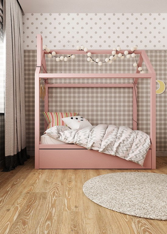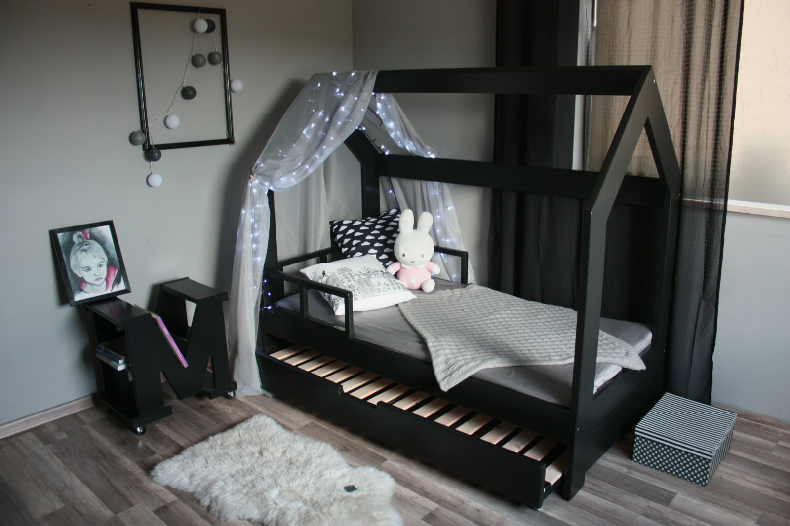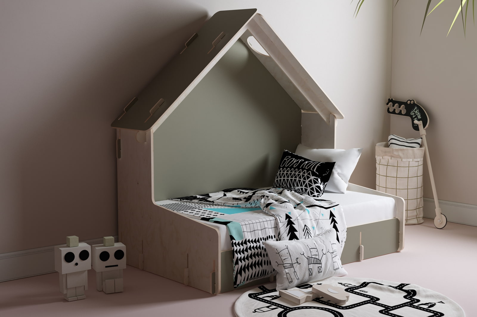 A house bed is a rather unusual piece of furniture that combines a place for sleep and entertainment. This design allows children to feel more cozy, comfortable, protected and relaxed.